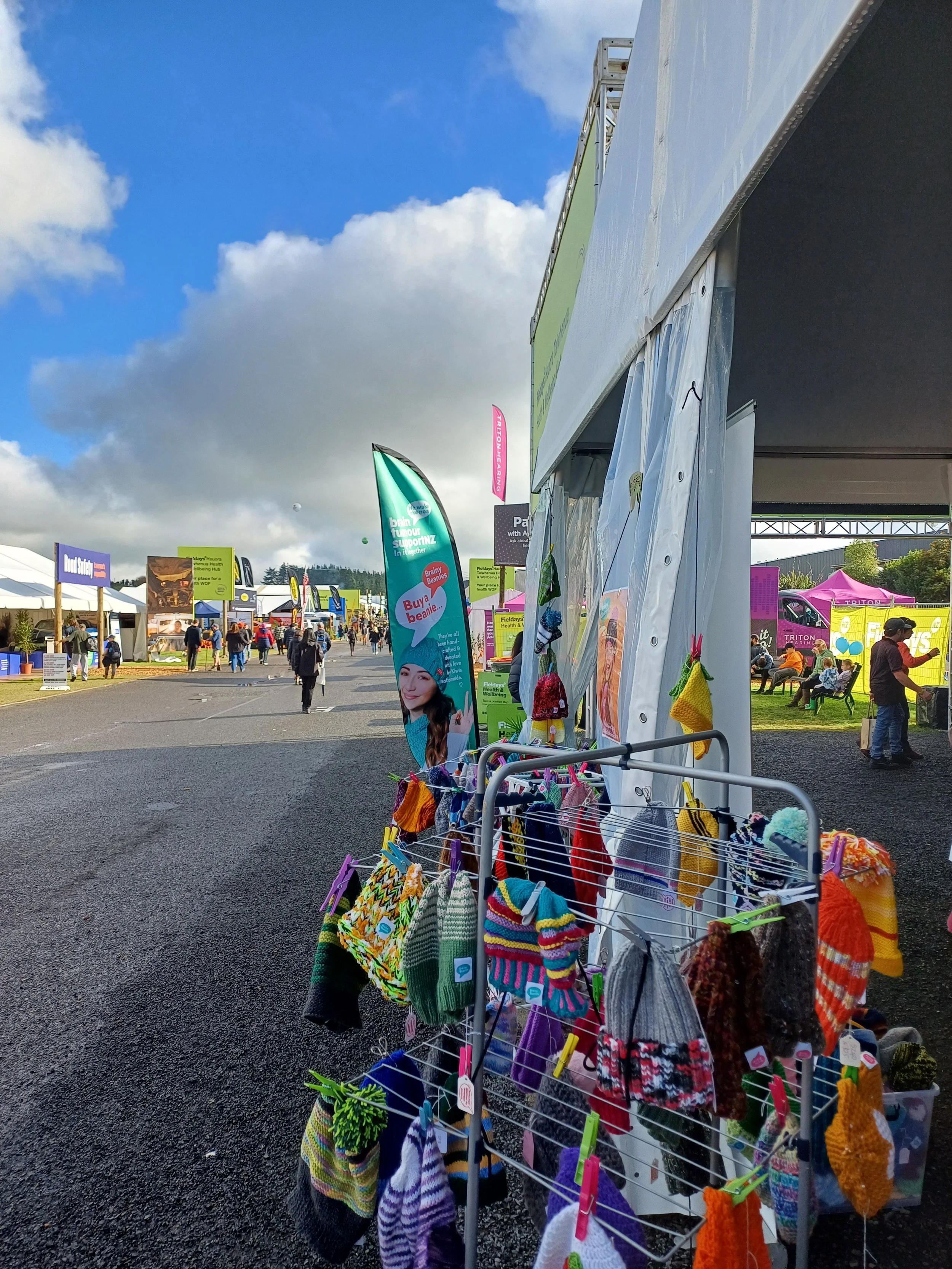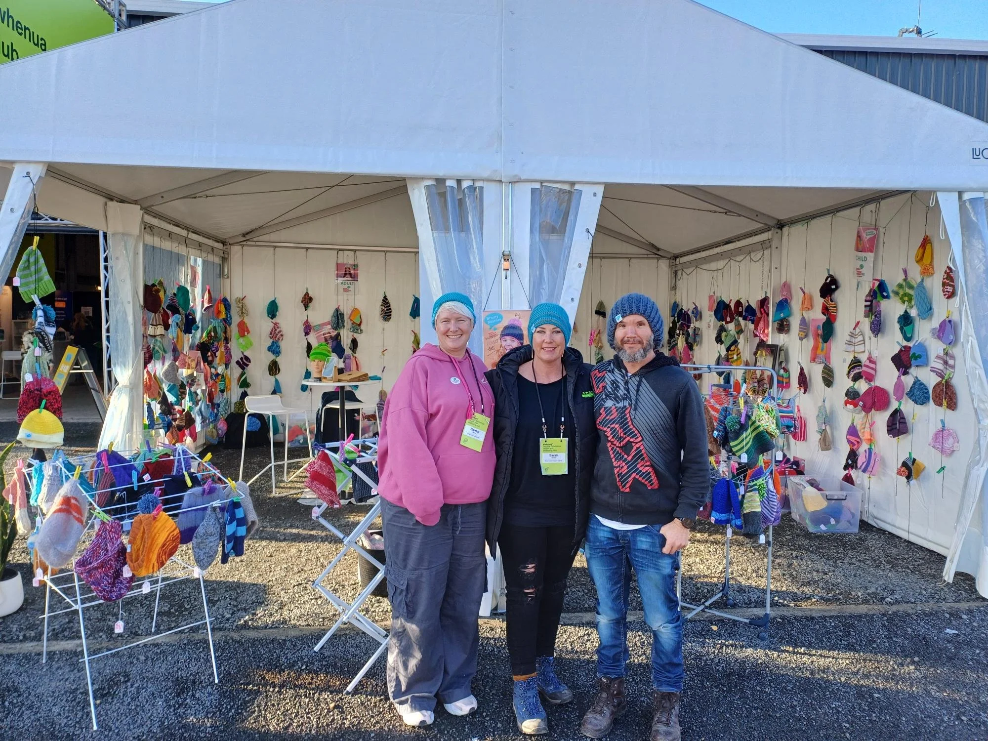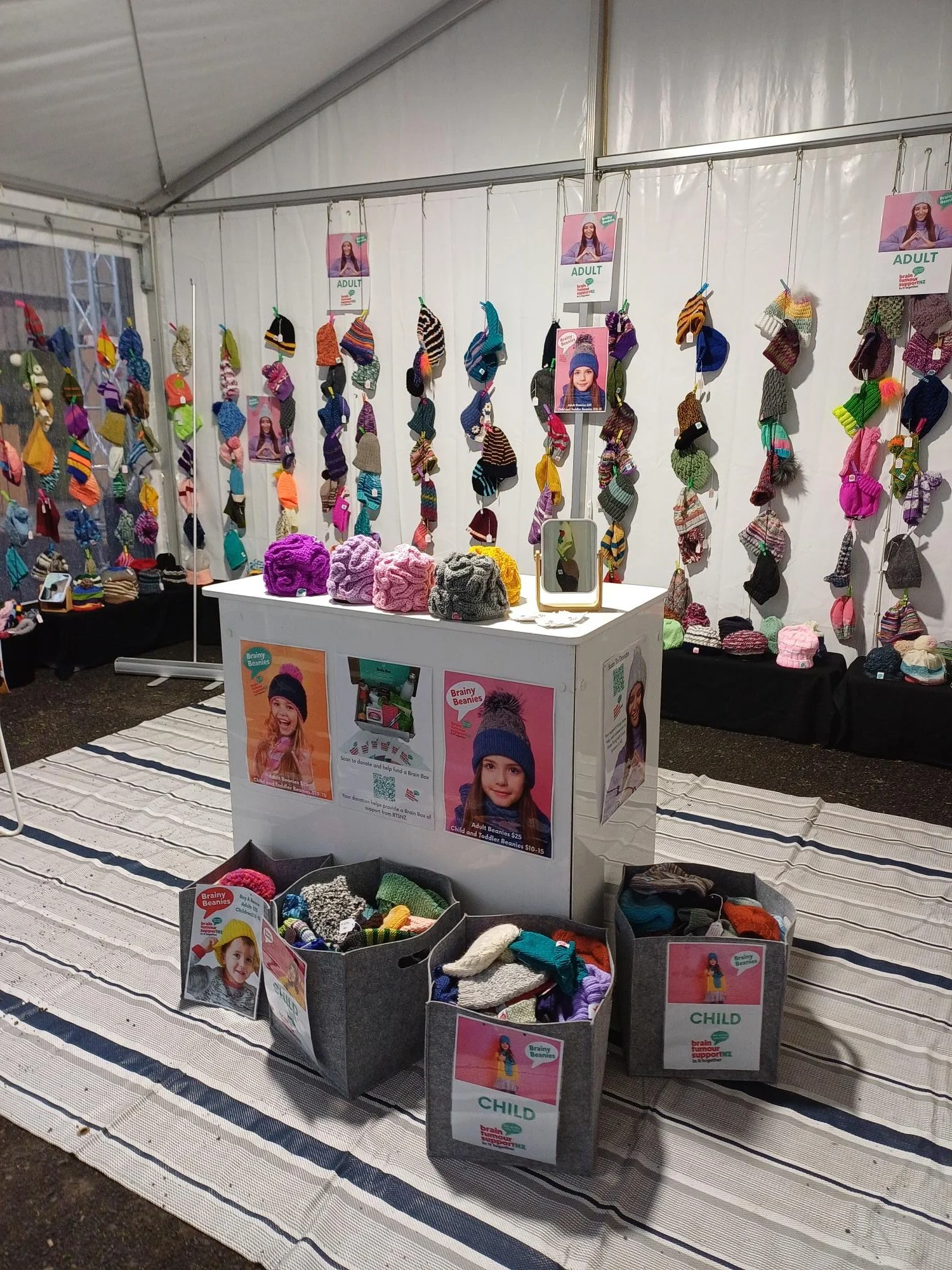 From there, we travelled north to Fieldays in Kirikiriroa Hamilton, where we had a marquee outside the health hub, filled with beanies on display. These beautiful creations donated from all over the country sparked conversations about brain tumours, whānau, and hope.