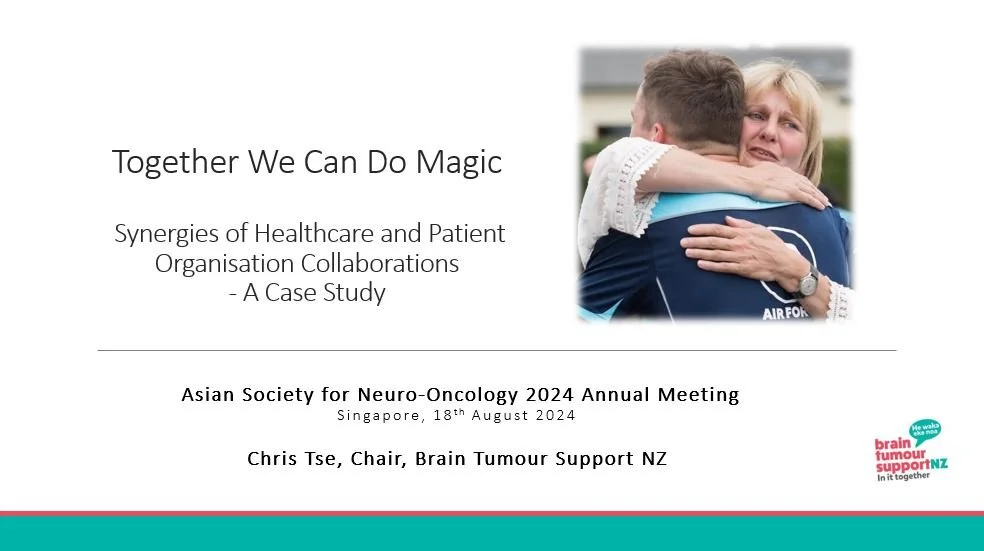 This presentation was delivered by Brain Tumour Support NZ chair, Chris Tse, at the Asian Society of Neuro-Oncology Annual Scientific meeting (ASNO 2024) on 18th August 2024 in Singapore. Download the presentation here.